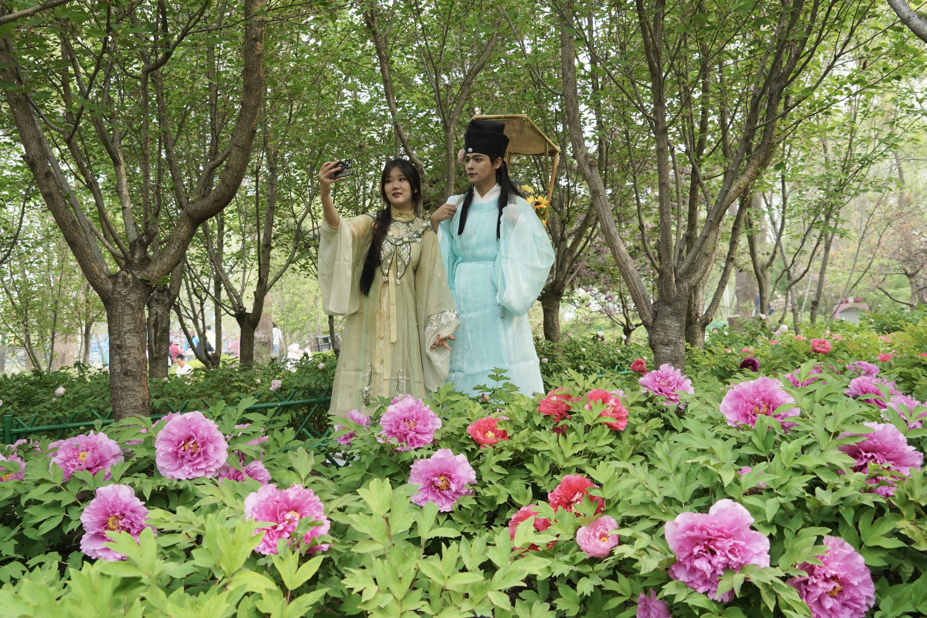 在朝阳区的太阳宫公园,60亩牡丹花将进入盛花期。4月16日97热超级碰在线播放,北京牡丹文化节在这里开幕,融合赏花、文化、科技、市集、便民服务于一体,活动将持续至5月5日。