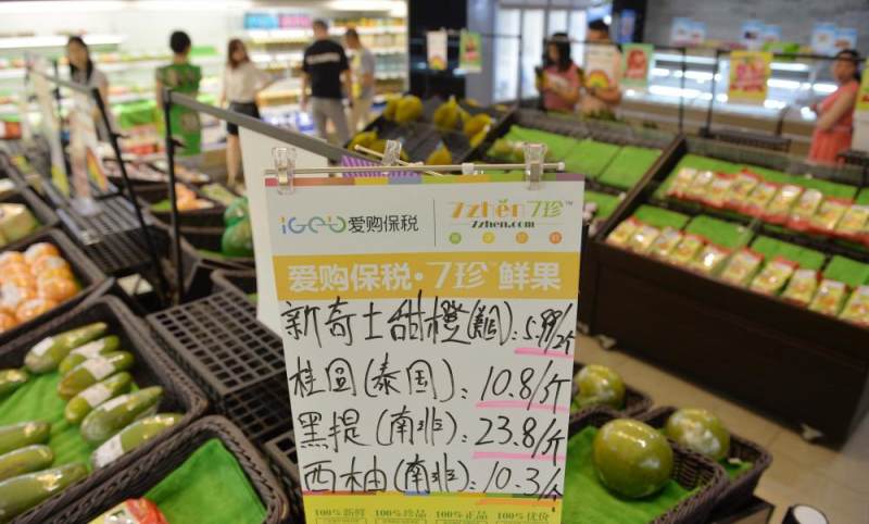 市民在重庆保税商品展示交易中心选购进口水果(摄影/张锦辉)