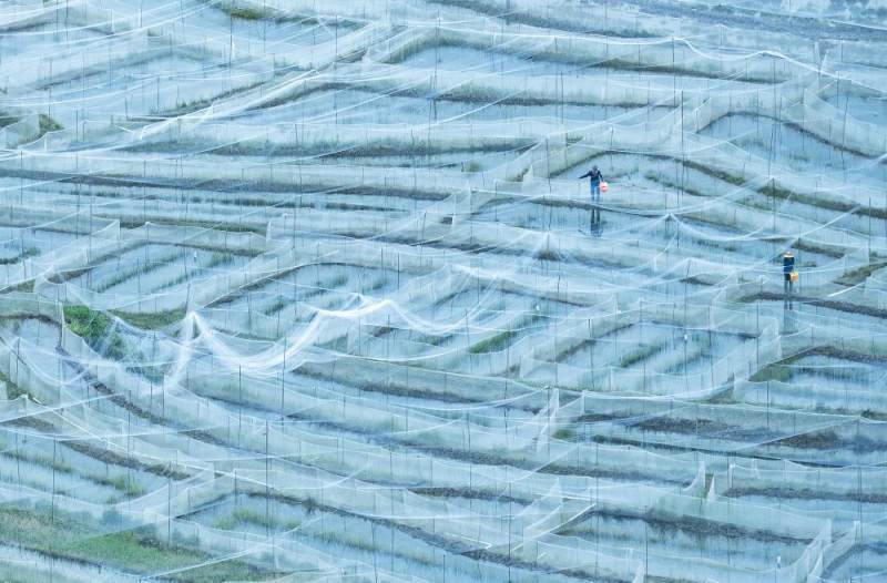 丰都县三建乡廖家坝,水产养殖场成片的渔网。这里养殖的鲟鱼出口到了东南亚(丰都县委宣传部供图)
