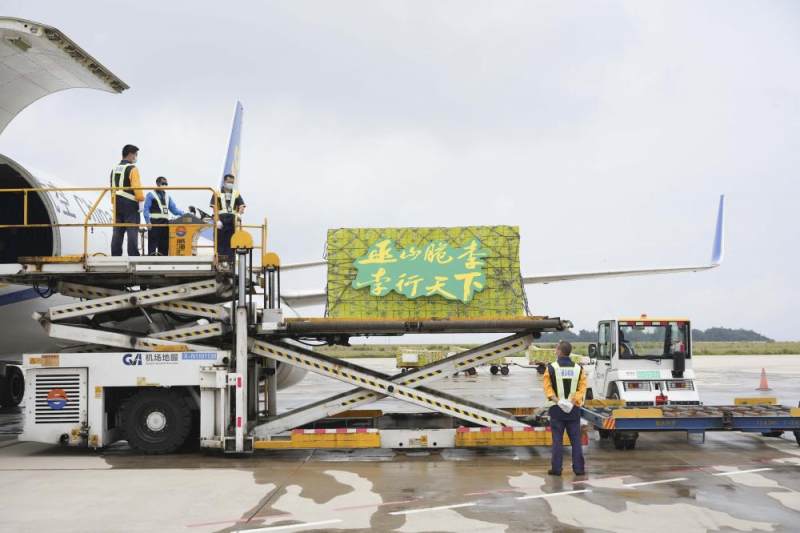 一批巫山脆李在巫山机场“坐”飞机到南京(摄影/谢智强)