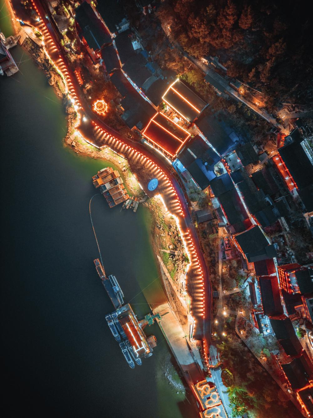 龚滩古镇新增了夜间游船项目(摄影/卢津金)