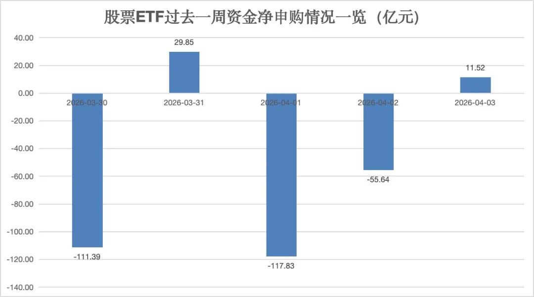 据银河证券基金研究中心数据统计,上周五(清明小长假最后一个交易日),全市场股票ETF(含跨境ETF)资金净流入11.52亿元,逆转了前两个交易日净流出的趋势。不过,从过去一周情况看,股票ETF资金净流出金额依旧接近250亿元。
